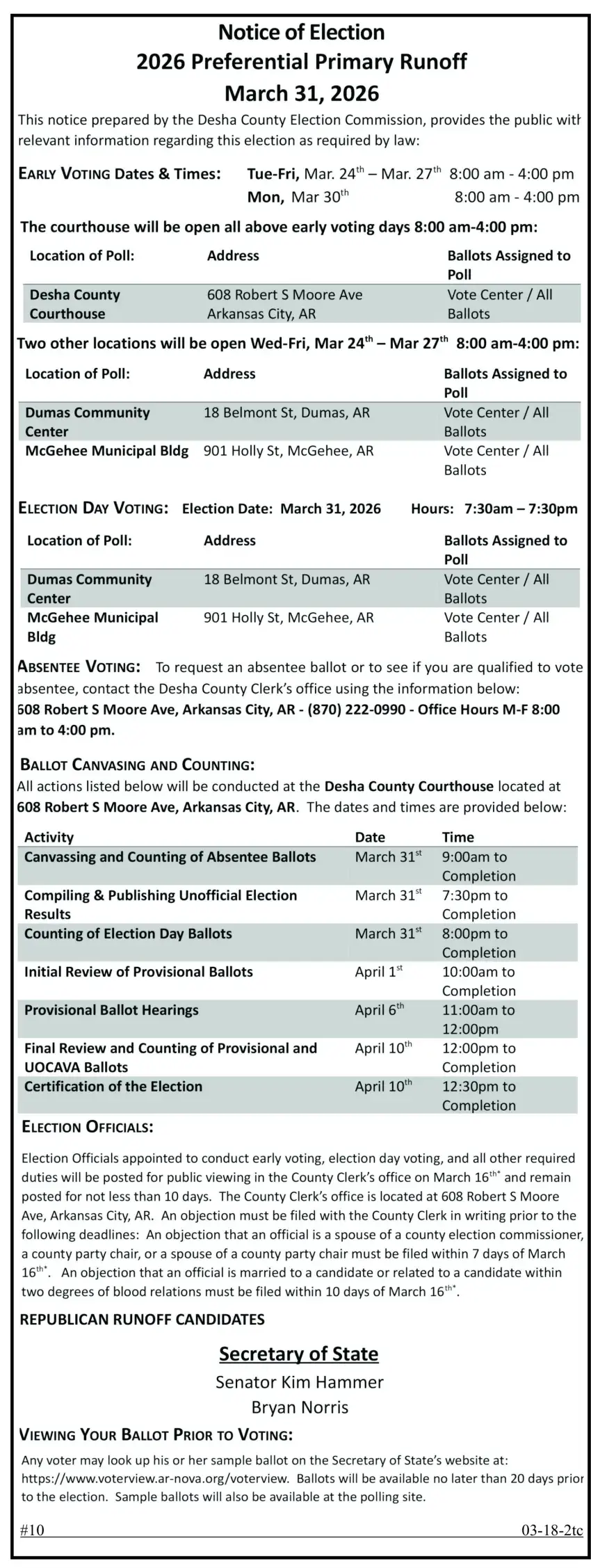 Early Voting at the Dumas Community Center.