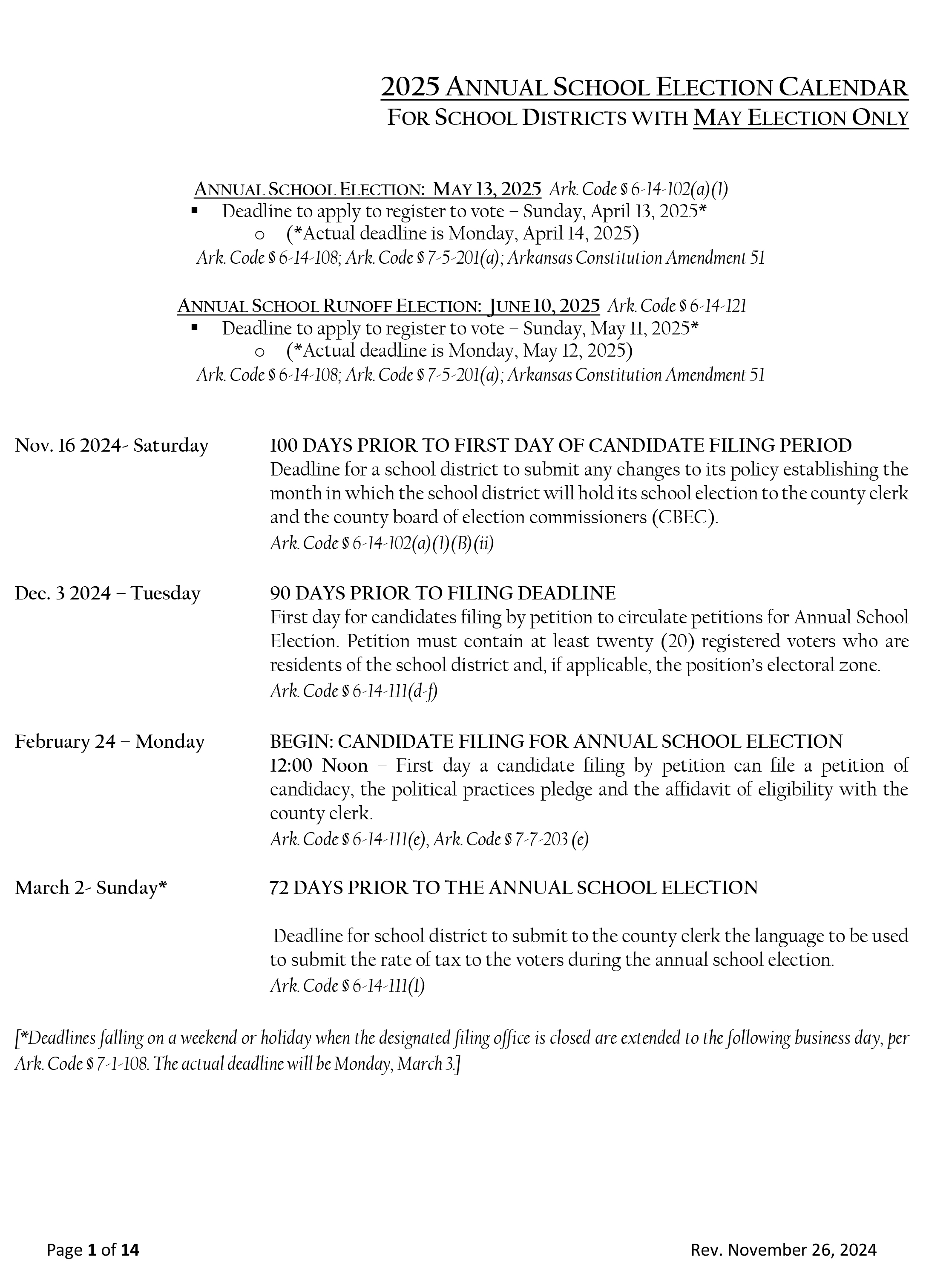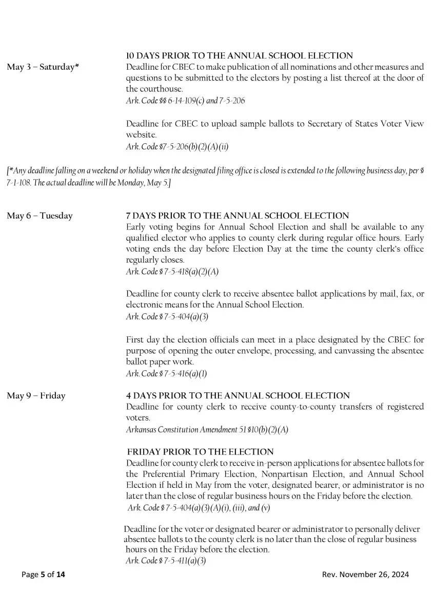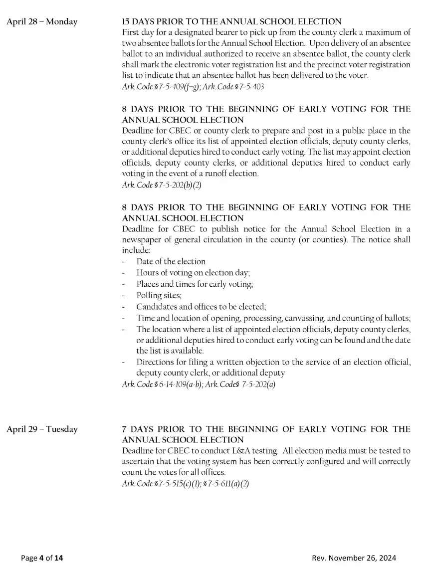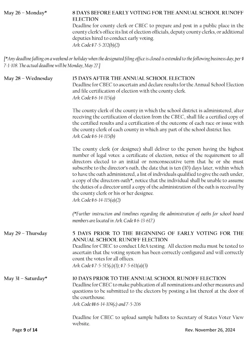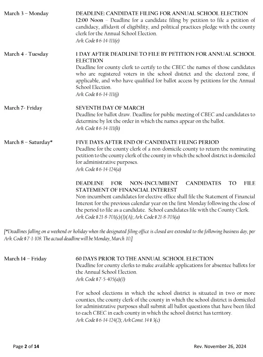 Election time is drawing near for Annual School elections. For anyone interested in filing for candidacy for Dumas School District the deadline is Monday, March 3, 2025, interested persons can learn more at https://www.sos.arkansas.gov/uploads/elections/2025_May_School_Election…