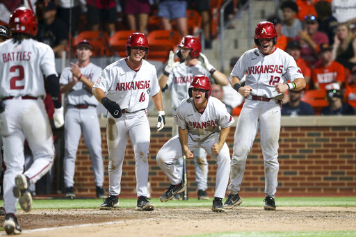 Arkansas (40-18) advances to Sunday’s title game against the winner of an elimination game between Oklahoma State (40-21) and Missouri State on Sunday morning. A loss by the Razorbacks would force a finale on Monday.