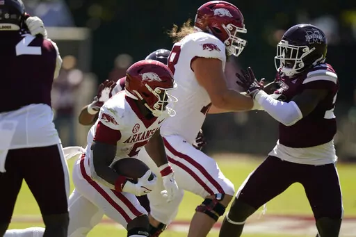 Arkansas leads the SEC with 21 sacks, which is three more than Alabama. ... The Razorbacks have had a 100-yard rusher in a program-best seven straight games. Sanders has four of the seven. ... Arkansas is scoring 29.5 points per game and allowing 32.2. ... Arkansas OL Brady Latham has made 29 straight starts. ... BYU QB Jaren Hall has a 7-3 mark as a starter against Power Five teams and is 13-5 overall. ... Cougars DB Micah Harper on his team's attitude after a 4-2 start: "Our team is very disappointed at the moment, because we expect to go undefeated and nothing less. There’s still a lot of season left and a win against Arkansas this week would change the momentum of our season.”