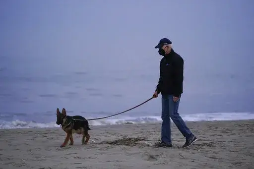 Biden and first lady Jill Biden took the German shepherd on a walk near their second home in Rehoboth Beach, Delaware.