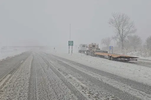 Blizzard conditions early Wednesday led to near-zero visibility in south-central Nebraska, the state patrol said via Facebook, urging people to stay off the roads. There were road closures of more than 160 miles (255 kilometers) of I-80 from Lincoln to Lexington and nearly 70 miles (115 kilometers) of I-29 along the Nebraska-Iowa border. Stalled cars, jackknifed semitrailers, crashes and downed power lines contributed to the chaos.