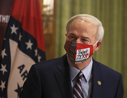 In a news release on the day's virus numbers, Hutchinson urged Arkansans to "be careful of the social gatherings and remind each other that wearing a mask protects those around us."