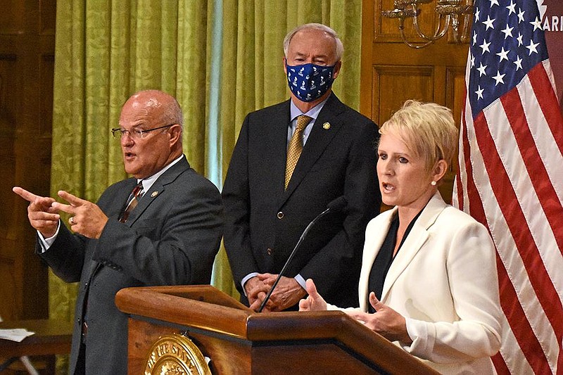 But Gov. Asa Hutchinson said he was encouraged by the state's case numbers of the past few days, including the fewer than 400 confirmed cases that had been added each day for four days in a row.