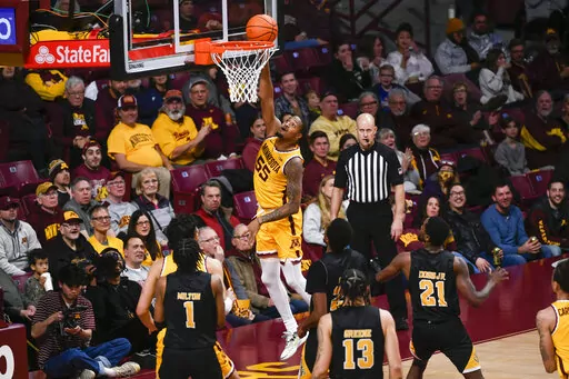 MINNEAPOLIS (AP) — Braeden Carrington hit four 3-pointers and finished with 20 points, Jamison Battle added 18, including five 3s, and Minnesota beat Arkansas-Pine Bluff 72-56 Wednesday night to snap a five-game losing streak.