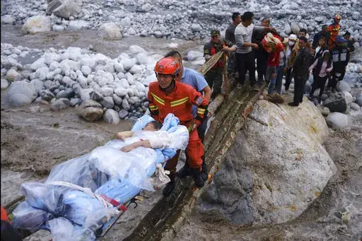 State broadcaster CCTV showed rescue crews pulling a woman who appeared uninjured from a collapsed home in Moxi, where many of the buildings are constructed from wood and brick. Around 150 people were reported with varying degrees of injuries.
