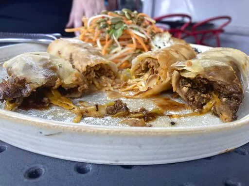 For the festival, Chinese-made chorizo is being celebrated with inventive dishes trying to fuse Chinese and Mexican cultures. At Mexican restaurant BOCA, for instance, chef and James Beard Award semi-finalist Maria Mazon made vegan and regular chorizo eggrolls with a carrot and papaya slaw topped with a fried egg.
