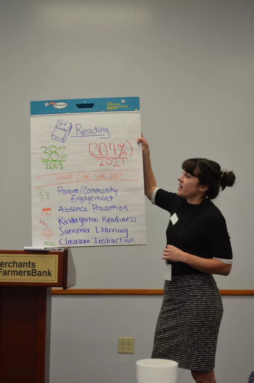 Kinser oversees the Foundation’s grantmaking, affiliate system, impact investing and community partnerships. She talked about the services the foundation provides and how the data on how resources can be distributed to counties across the state and where is the critical need. The first need is 3rd grade reading and how there is reduction of 3rd grade reading level from 38% in 2019 to 30.4% in 2021. She said parent and community engagement, absence prevention, kindergarten readiness, summer learning and classroom instruction are some ways to improve the numbers. She also talked about food insecurity with Arkansas being 2nd in the nation with 16.6% of Arkansans being insecure in 2019, 18.3% in 2020 and 17.6 percent in 2021. She said ways to make this better is to make food easy to access, nutritious, affordable, safe and client centered.