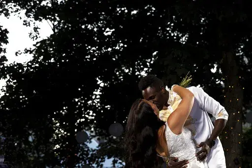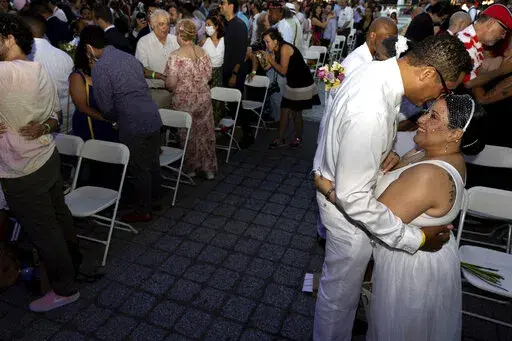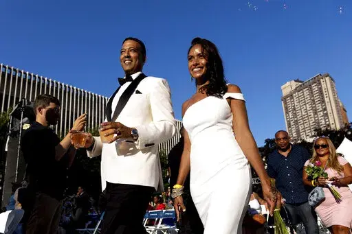 NEW YORK (AP) — Hundreds of couples whose weddings were derailed or scaled back due to the COVID-19 pandemic got a do-over at no less than a New York City landmark.