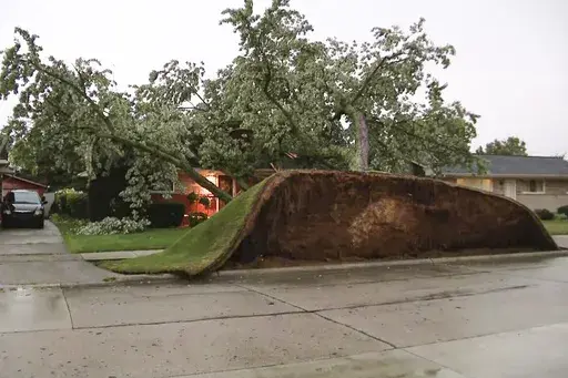 In the Detroit suburb of Royal Oak, resident Michael Zaccardelli said he had heard about the approaching bad weather Tuesday evening and decided to move his car off the street. Just 15 minutes later, a tree in his front yard fell onto the exact spot where his car had been parked.