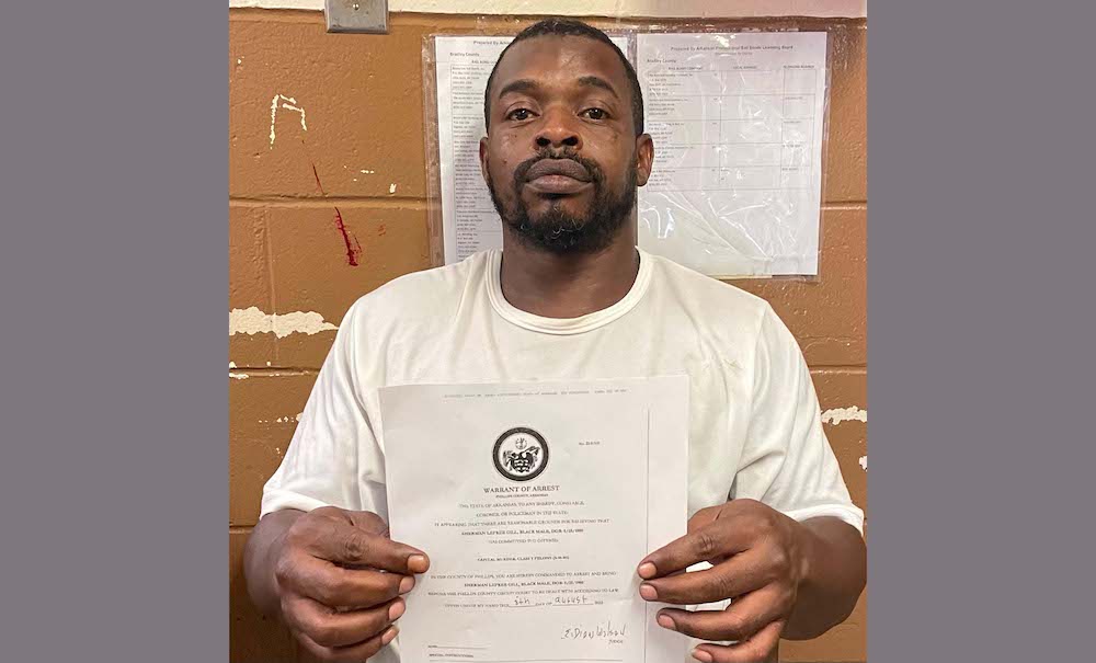 Officials of the Warren Police Department have been gathering information and searching the area for Sherman Gill (42). During the course of the investigation contact was made with Gill and his family by Sgt. Thomas Miller and Sgt. Tim Nichols who convinced Sherman Gill to surrender himself. Gill is currently awaiting extradition to Phillips County, Arkansas and is being charged with Capital Murder (class Y felony).