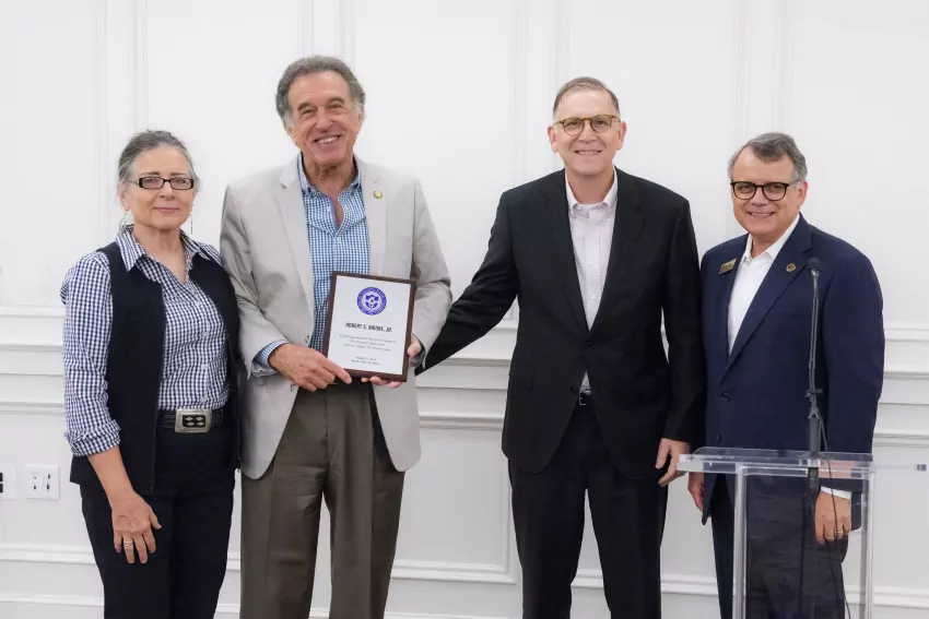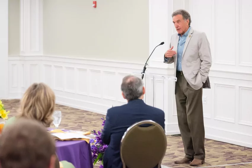 University President Dr. Ben Sells welcomed attendees with remarks about Chairman Moore, followed by a presentation of the Ouachita Baptist University Distinguished Alumni Award for Public Service to the State of Arkansas.