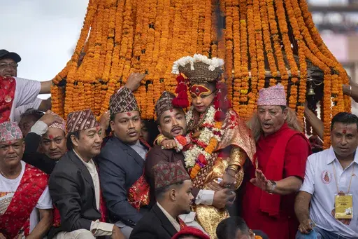 KATHMANDU, Nepal (AP) — Nepal’s monthslong festival season began on Tuesday with tens of thousands of devotees pulling a wooden chariot with a young girl revered as a living goddess.