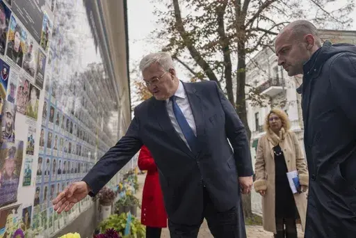 KYIV, Ukraine (AP) — France's foreign minister pledged his support for Ukraine’s plan for ending the war with Russia, telling reporters in Kyiv on Saturday that he would work with Ukrainian officials to secure other nations’ backing for the proposal.