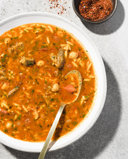 On any given evening during the month of Ramadan, a soup similar to this graces many Libyan tables. Packed with fork-tender meat, plump orzo, warming spices and bright herbs, the comforting meal is adored — so much so that it’s called “shorba,” meaning, quite simply, soup, with no confusion as to which soup is being referred to.