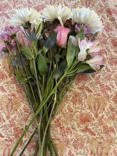 When you bring your flowers home, trim their stems at an angle, remove leaves below the waterline and place flowers in a vase to hydrate, Murphy says. These steps give the flowers “some room to breathe” and improve their longevity.
