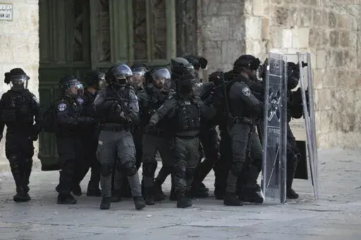 JERUSALEM (AP) — Israeli police in full riot gear stormed a sensitive Jerusalem holy site sacred to Jews and Muslims on Friday after Palestinian youths hurled stones at a gate where they were stationed.