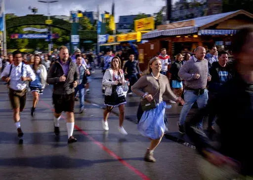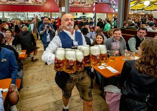 MUNICH (AP) — The beer is flowing at Munich's world-famous Oktoberfest for the first time since 2019.