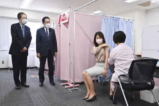 Kishida unveiled his plan to consider easing border controls Saturday after visiting Tokyo’s Haneda international airport, where he observed quarantine areas and a worksite vaccination rollout for airline workers.