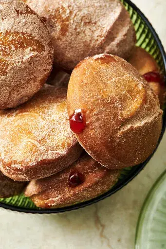 Jelly doughnuts, also known as sufganiyot, have become a classic Hanukkah treat, one of a number of foods fried in oil that are popular on the holiday ( latkes, or potato pancakes, are another).