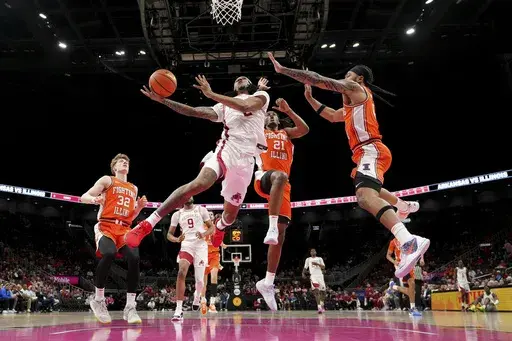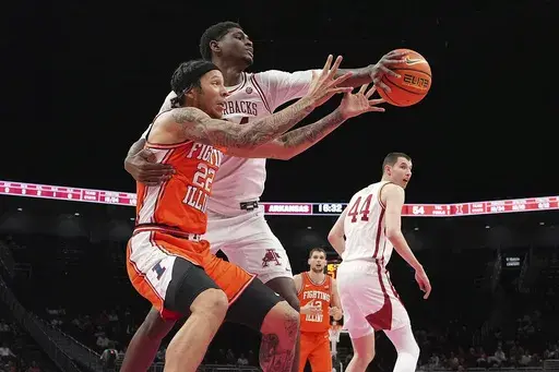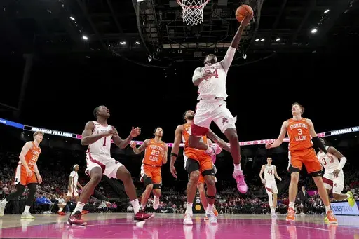 KANSAS CITY (AP) — Freshman Kasparas Jakucionis scored a season-high 23 points, Tomislav Ivisic had 21 points and 10 rebounds and Illinois beat No. 19 Arkansas 90-77 on Thursday in the Thanksgiving Hoops Showcase.