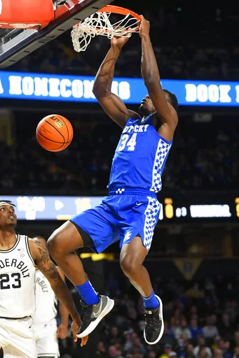 Already leading the nation in rebounding, Tshiebwe (SHEE-bway) set career highs in scoring in consecutive games for the 18th-ranked Wildcats (13-3, 3-1 Southeastern Conference). He had 30 points and 13 rebounds in a lopsided victory at Vanderbilt on Tuesday night, three days after finishing with 29 points and 17 boards against Georgia.