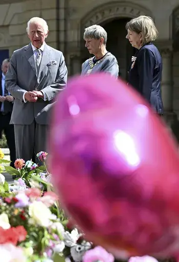 LONDON (AP) — King Charles III met Tuesday with survivors of the stabbing rampage that killed three young girls in northern England, viewing flowers and teddy bears laid in remembrance of the victims and signing a book of condolence as Britain recovers from widespread unrest fueled by misinformation around the tragedy.