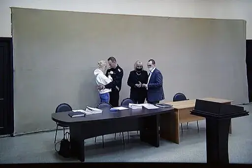 Members of Navalny's defense team complained they were not allowed to bring cellphones or laptops containing case files into the makeshift courtroom at the IK-2 penal colony. The prison is located in the Vladimir region, 100 kilometers (62 miles) east of Moscow.
