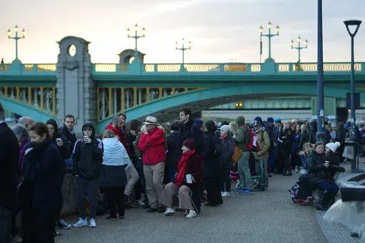 LONDON — Thousands of mourners are standing in line for at least 14 hours to see Queen Elizabeth II’s coffin while she lies in state in London.