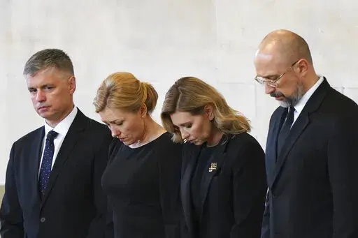 LONDON — Ukraine’s first lady, Olena Zelenska, has appeared at London’s Westminster Hall to pay her respects to Queen Elizabeth II.