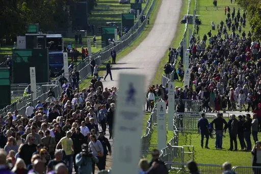 Police officers were dotted along the route along the Long Walk, a 3-mile (5-kilometer) avenue where a walking funeral procession will be held before the queen is laid to rest in St. George’s Chapel.
