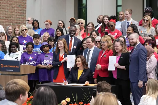 Whitmer signed the legislation just outside of Detroit, flanked by state lawmakers and individuals affected by gun violence. Former Arizona Congresswoman Gabby Giffords, who began campaigning for gun safety after she was shot in the head in 2011, was also in attendance.