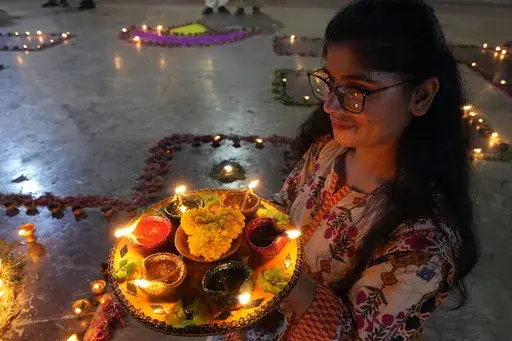 LUCKNOW, India (AP) — Millions of Indians celebrated Diwali on Sunday with a Guinness World Record number of bright earthen oil lamps as concerns about air pollution soared in the South Asian country.