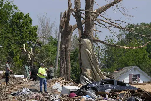Still more severe weather was moving across the Midwest. The weather service's Storm Prediction Center showed an enhanced severe storm risk late Thursday into Friday morning for much of Nebraska and western Iowa, including areas where tornadoes hit Iowa and hurricane-force winds, large hail and torrential rain flooded streets and basements in Nebraska.