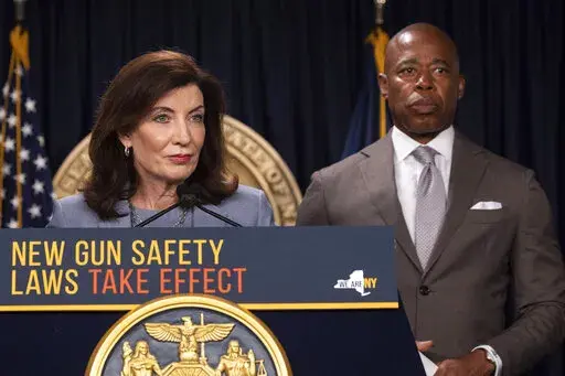 New York is among a half-dozen states that had key provisions of its gun laws invalidated by the high court because of a requirement for applicants to prove they had “proper cause” for a permit. Gov. Kathy Hochul said Friday that she and her fellow Democrats in the state Legislature took action the next week because the ruling “destroyed the ability for a governor to be able to protect her citizens from people who carry concealed weapons anywhere they choose.”