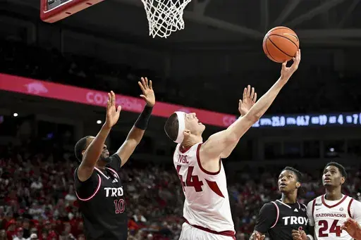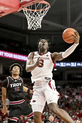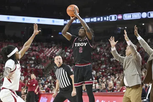 After the run, Troy didn't come within single digits again as Arkansas avoided a letdown following Saturday’s loss to No. 8 Baylor. The Trojans shot just 36% in the second half and were 0 for 8 from three-point range.