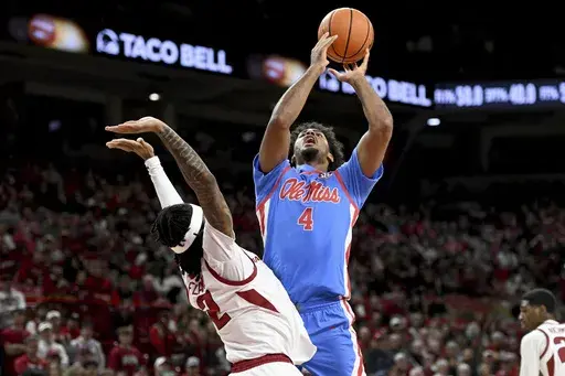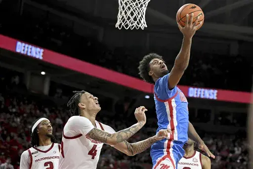 Sean Pedulla scored 16 and Dre Davis 10. Pedulla and Dia made back-to-back buckets with less than nine minutes left to build Ole Miss’ lead to double digits after Arkansas (11-4, 0-2 Southeastern Conference) had cut it to six.