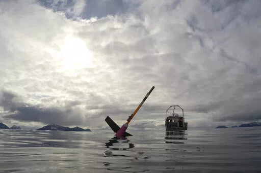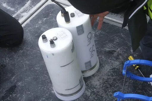 After its first nighttime mission, a crew member spotted it bobbing in the water, and the Nanuq — the Inupiat word for polar bear — backed up to let people pull the 130-pound (59-kilogram) glider onto the ship. Then the sensor was removed from the drone and rushed into the ship’s cabin to upload its data.