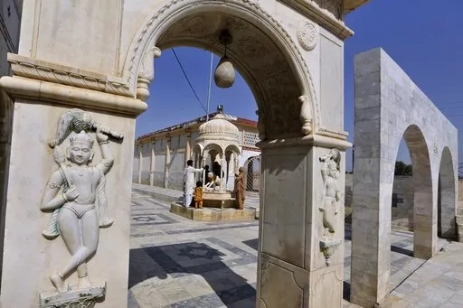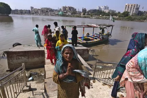SUKKUR, Pakistan (AP) — On the sandy banks of the Indus River, which flows top to toe through Pakistan and into its southern Sindh province, Hindus waited for brightly colored boats to ferry them to a peaceful island that has housed a temple for almost 200 years.