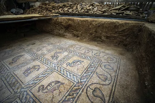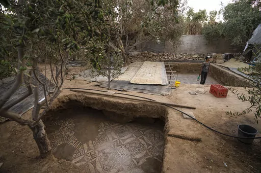 BUREIJ, Gaza Strip (AP) — Last spring, a Palestinian farmer was planting a new olive tree when his shovel hit a hard object. He called his son, and for three months, the pair slowly excavated an ornate Byzantine-era mosaic that experts say is one of the greatest archaeological treasures ever found in Gaza.