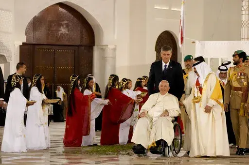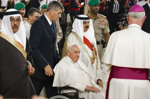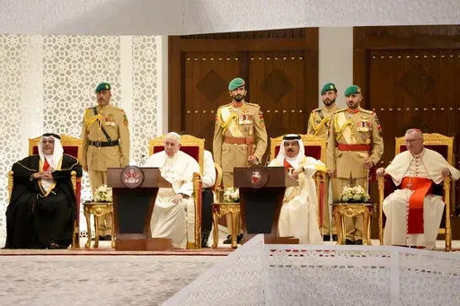 Al Khalifa, for his part, praised Francis' efforts to promote interfaith fraternity and said Bahrain was committed to a similar goal of a world “where tolerance prevails while striving for peace and rejects whatever divides its unity.”