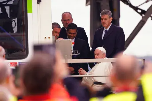 The 85-year-old Francis, who has been using a wheelchair for several months because of strained knee ligaments, said he was “in a lot of pain” as he flew to the Gulf. For the first time, he greeted journalists travelling with him seated rather than walking through the plane’s aisle.