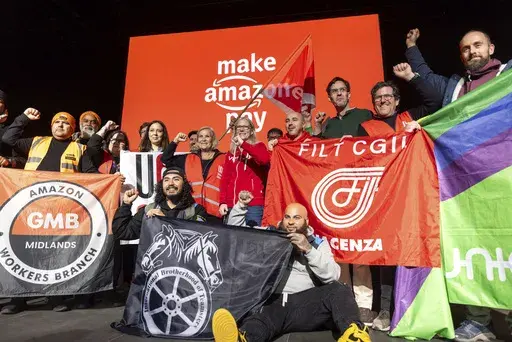In India, about 200 Amazon warehouse workers and delivery drivers, rallied Friday in New Delhi, some wearing masks of Amazon chief Jeff Bezos, to demand better wages and working conditions. Similar protests were planned in other countries.