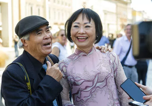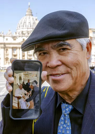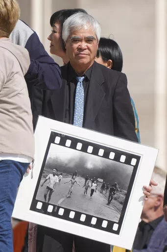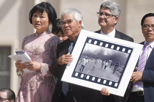 Ut and Kim Phuc Phan Thi, whose terror the AP photographer captured on June 8, 1972 during the Vietnam War, greeted Francis at the end of his general audience Wednesday in St. Peter’s Square, ahead of the 50th anniversary of the iconic image.