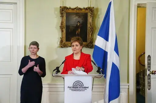 Sturgeon said she planned to remain in office until the SNP elects a new leader. Scotland is part of the U.K. but, like Wales and Northern Ireland, has its own semi-autonomous government with broad powers over areas including health care.