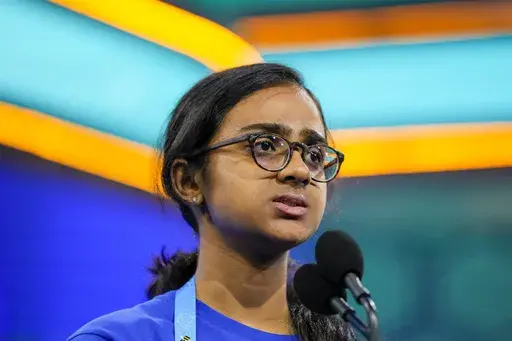 Although she was eliminated in the semifinals, 13-year-old Kavya Jakasaina of Jersey City, New Jersey, had the demeanor of a veteran speller — which she isn't. She only got serious about spelling after she lost her school bee last year.