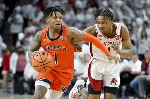 The Arkansas point guard finished with 28 points, five rebounds, four blocks, three assists and three steals as the Razorbacks stunned the top-ranked Tigers 80-76. It was Arkansas’ ninth consecutive victory and Auburn’s first loss since November.