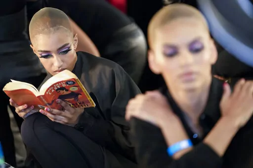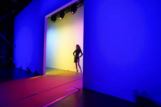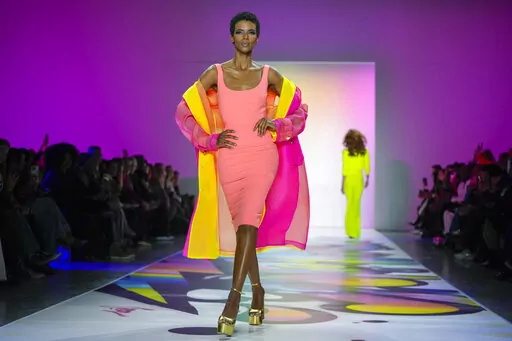 NEW YORK (AP) — Sergio Hudson created a nostalgic scene with shoulder pads, neon colors and graffiti prints taken right out of the early '90s with his latest collection Saturday.