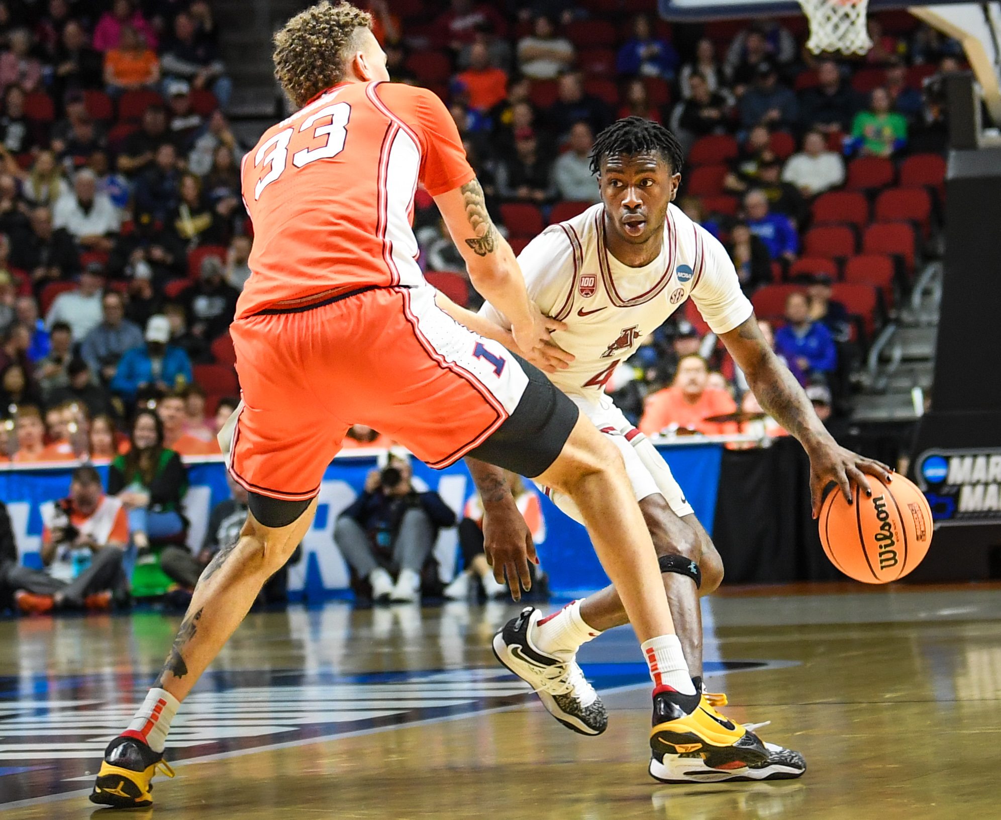 Arkansas (21-13) defeated No. 9 Illinois 73-63 while Kansas ousted No. 16 Howard 96-68. Jalen Wilson led the Jayhawks with 20 points. Eric Musselman was asked about facing Kansas following the win over Illinois.