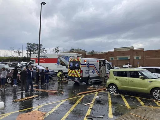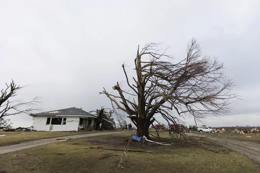 LITTLE ROCK, Ark. (AP) — A monster storm system tore through the South and Midwest on Friday, spawning deadly weather including tornadoes that shredded homes and shopping centers in Arkansas, collapsed a theater roof during a heavy metal concert in Illinois and made a fatal sweep into rural Indiana.